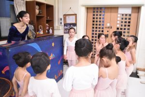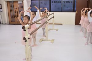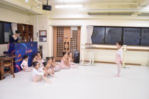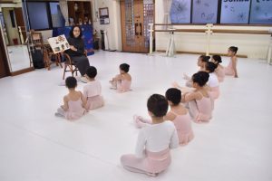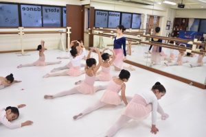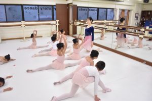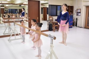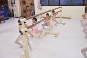 サファイアでは真っ直ぐ立つことができれば片手でバーレッスンをします。