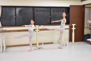 今日のバーレッスンでは、シュスなどルルベから降りる時にプリエを使わずに