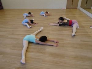 まずつま先のポワントから確認し、音楽に合わせてストレッチをしました。