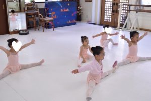 しえなちゃんは、ミニーに入ったばかりですが、身体柔らかいですねー。みるみる伸びています。