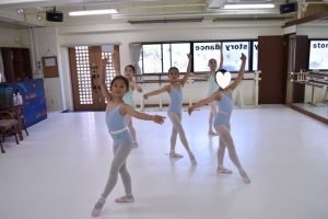 皆さんとるんるんにウォームアップをしてバーレッスンへと進みました。