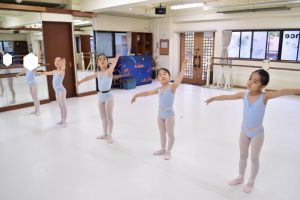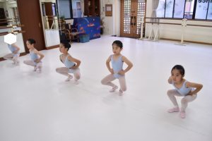 続いてバーで、エシャッペ、エシャッペ、パッセ、パッセ、12345プリエ、ジャンプジャンプも繰り返し練習しました。