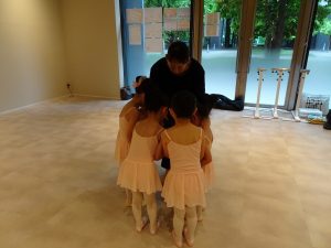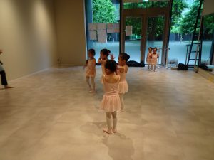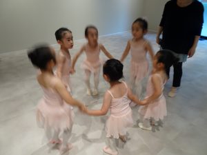 鏡の中のお友達を見て踊っているとタイミングが遅れます。