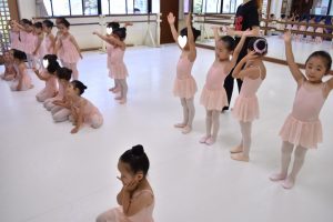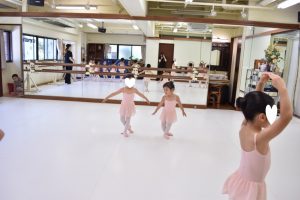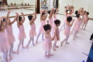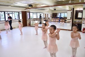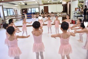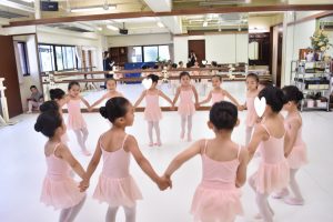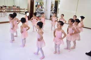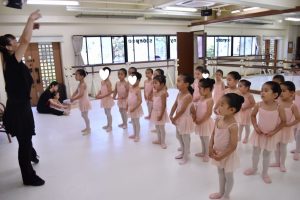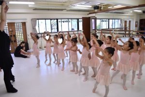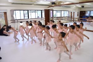・踊る前の「暗転板付」の練習(=自分の踊る立ち位置へ行くこと・暗転=照明が暗い状態)