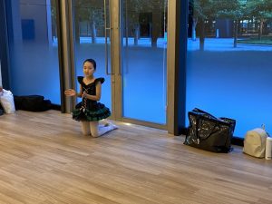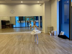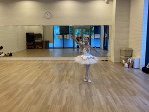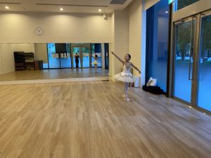 バーで練習したアラベスクもお尻より上で2カウントキープ。