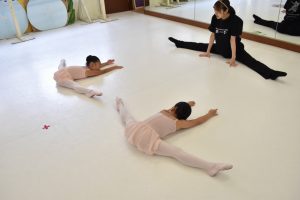 まいちゃんも、あんなちゃんもぺったりお腹がついていますので次はこの意識をしてみましょう♪