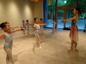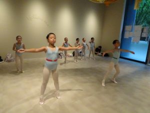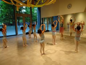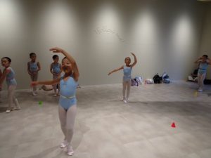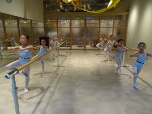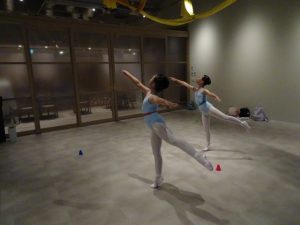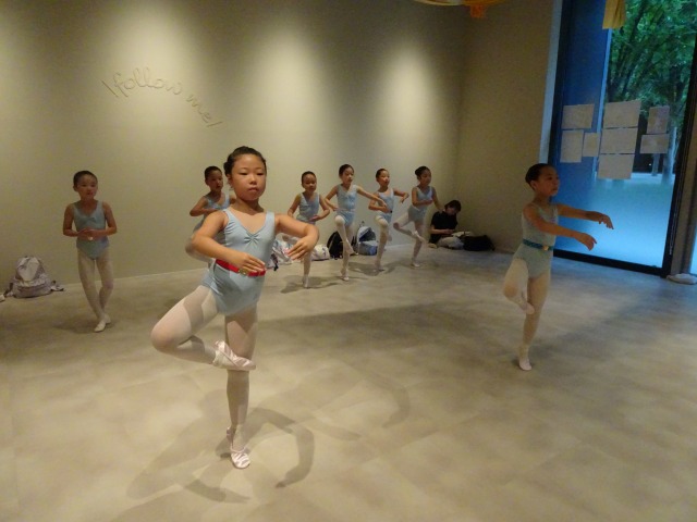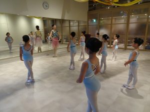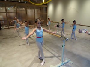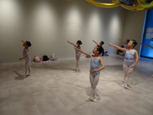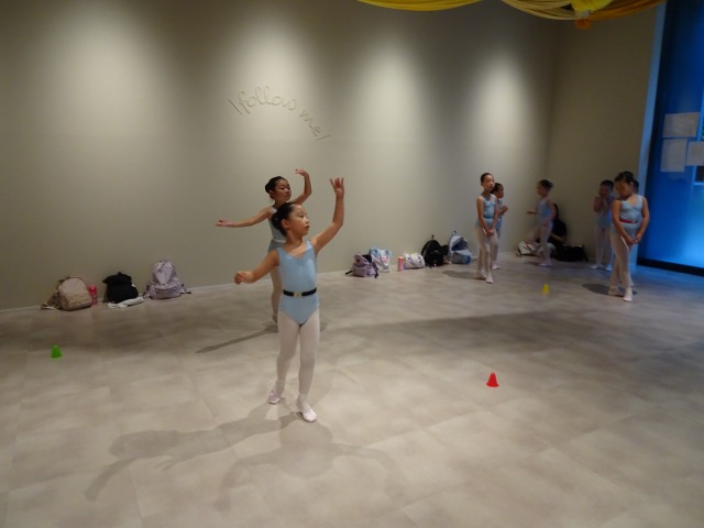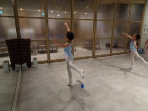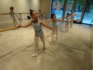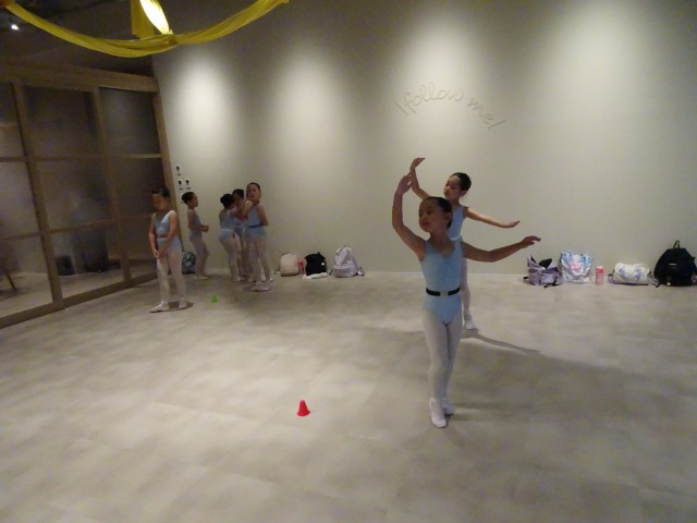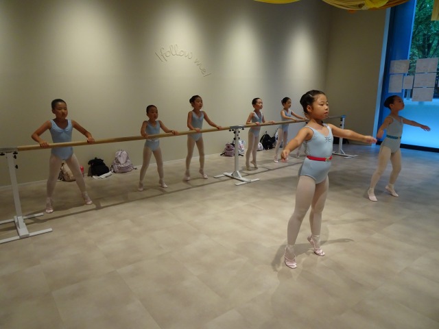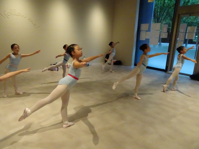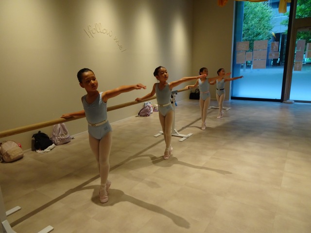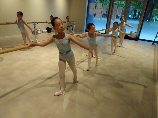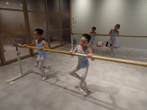 1年生はまだ真っ直ぐ立てないので、バーでパッセを練習。