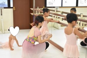 バレエの走り方の練習では、「足の裏を私に見えないように出してみて」と伝えると、