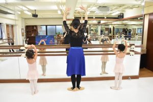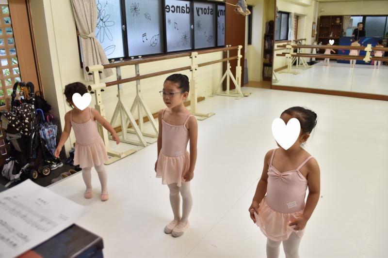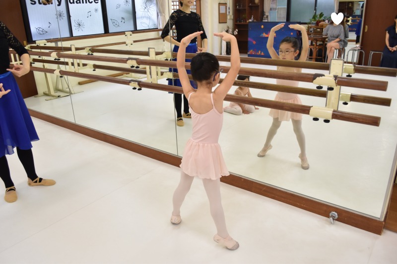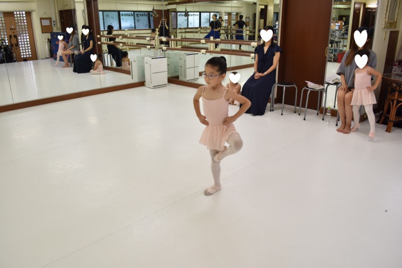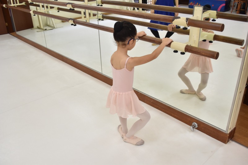 アテール(軸足のかかとをおろす)と、ルルベ(軸足のかかとをあげる)と、両方練習しました。