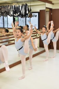 ロンドジャンブの時の最後の足上げですが、おしりを回してつま先を耳の横辺りに上げられるように。