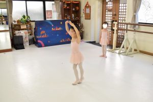 バーレッスンを通して、ピシッと立っていられるように練習していきたいと思います。