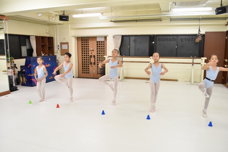 そしてパッセでは片足軸で同じようにプリエアップをする力をつけていきます。