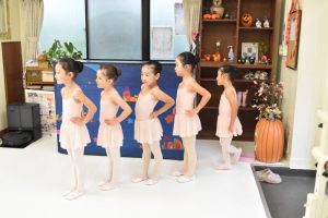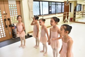 前屈と開脚が花丸になったら5番ポジションの練習が出来るようになります。