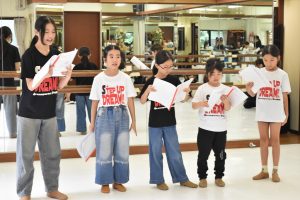 お休みされた方は、次の稽古の日はスタート30分前には来てくださいね。