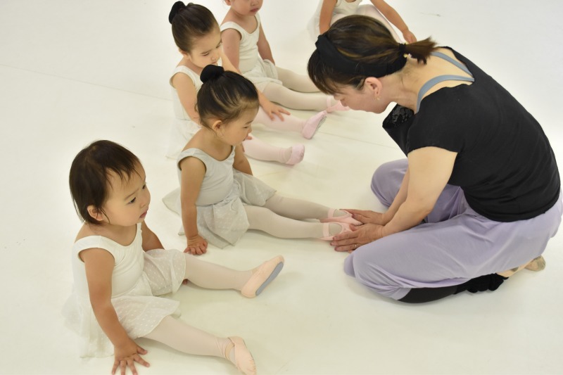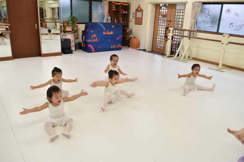 お膝もつま先もピーンと伸ばしてストレッチしようね。