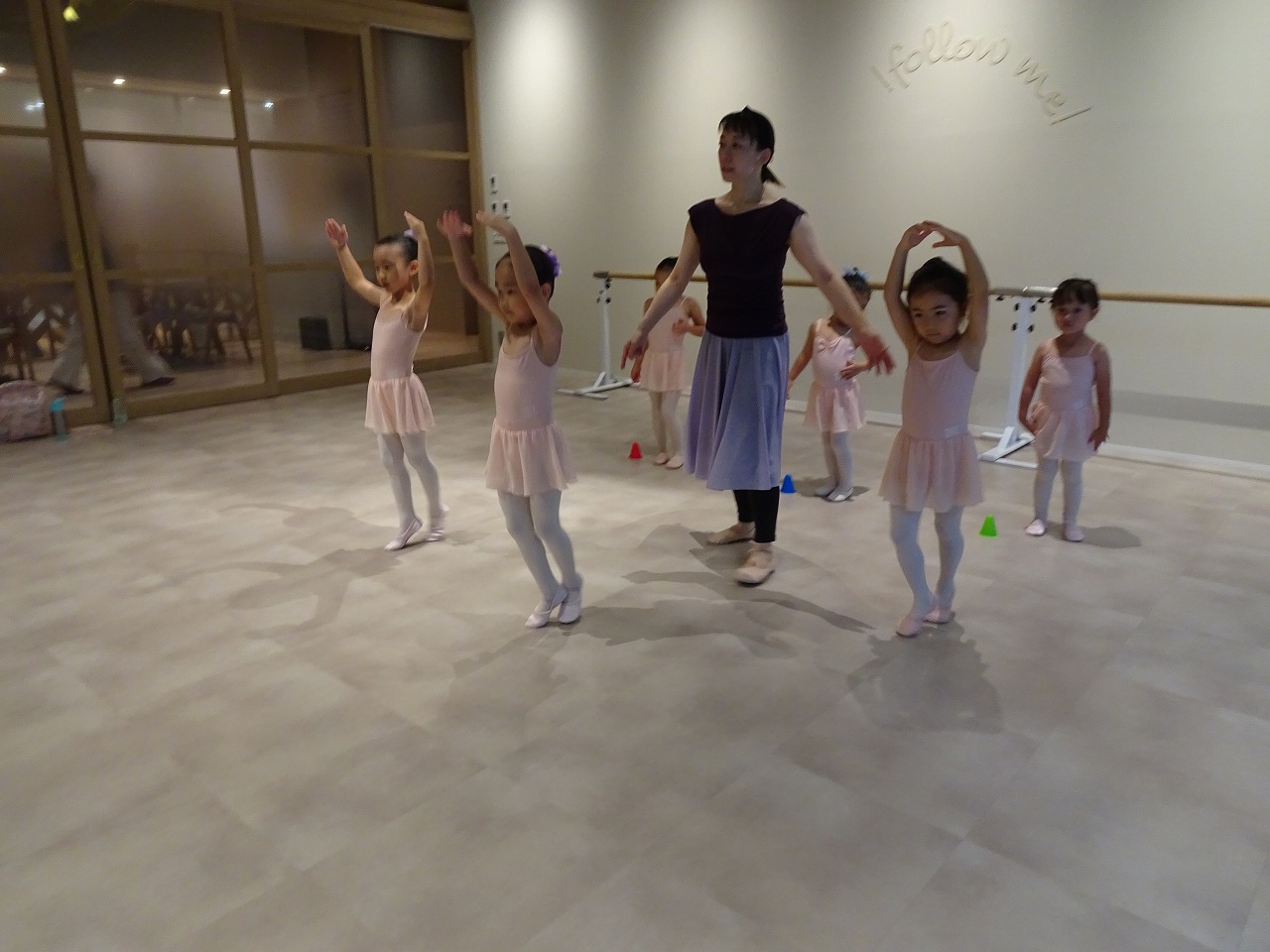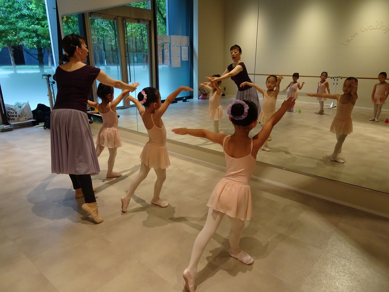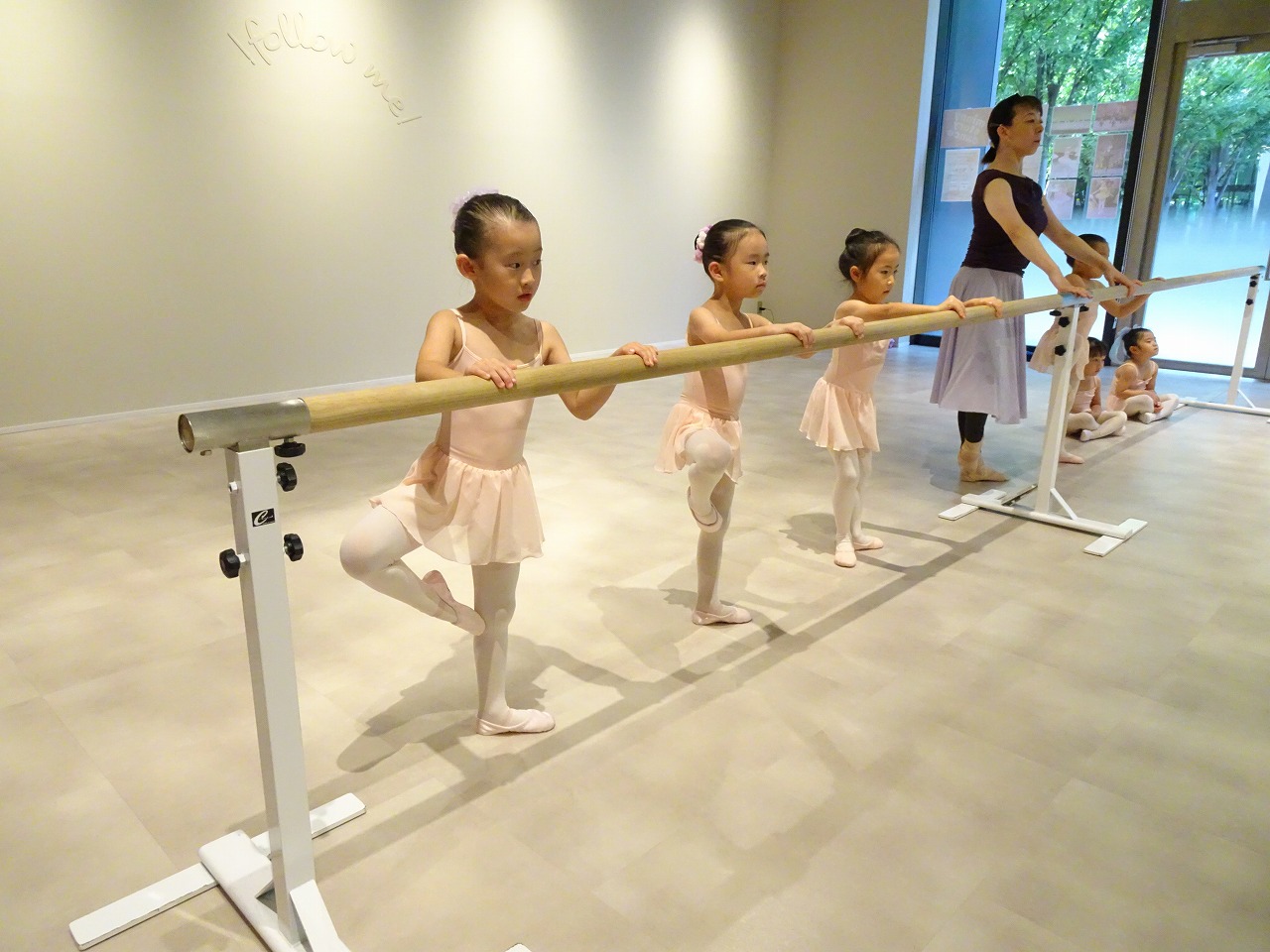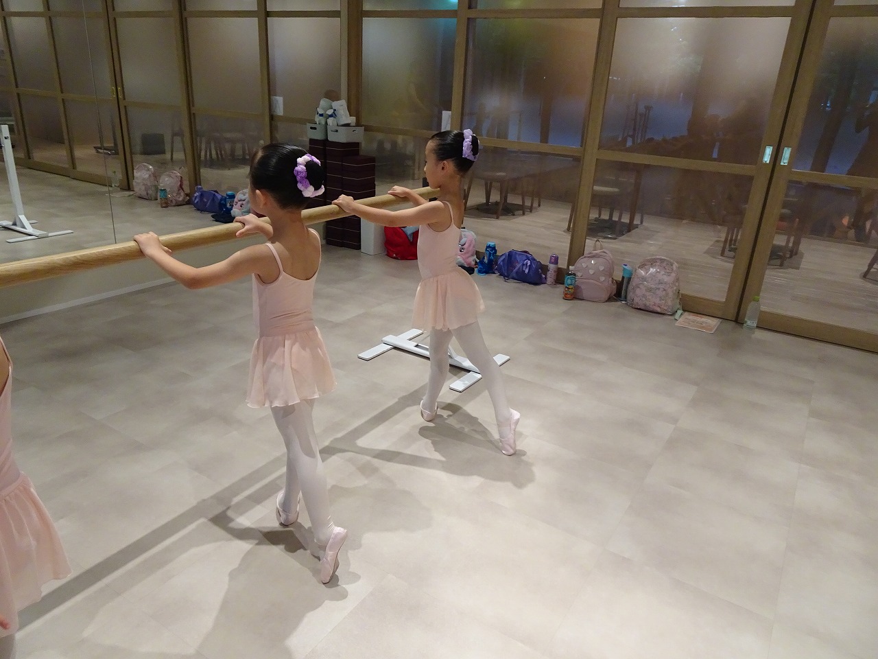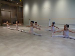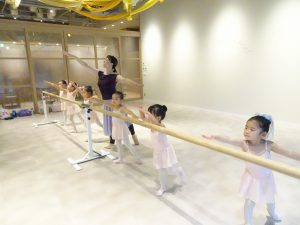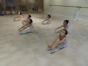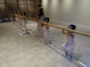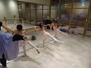 バーレッスンの時にアラベスクのポーズも練習です。