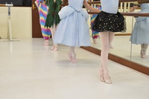 まずはゆっくり、プリエから膝が伸びて、ドゥミポワントから足指で床を蹴ってつま先を壁に向かって伸ばします。