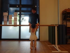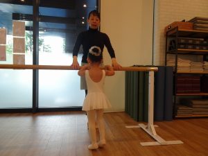 バーエクササイズにもチャレンジ。