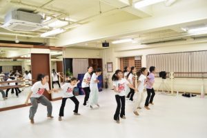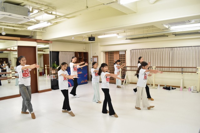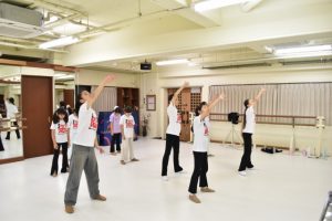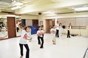 登場して最初の動き、ともちゃんにお手本をしてもらい全員で練習したところ