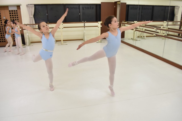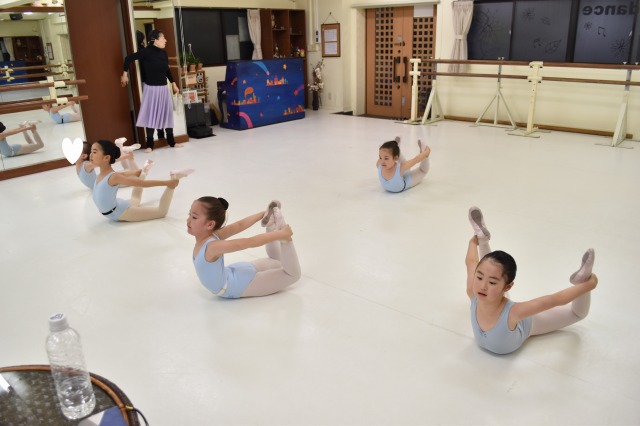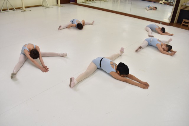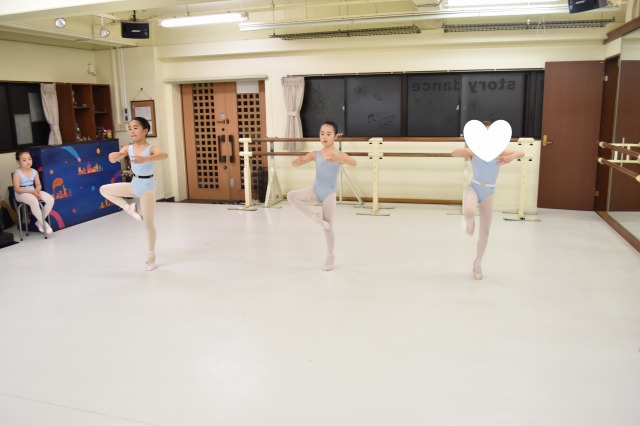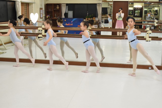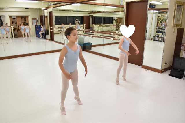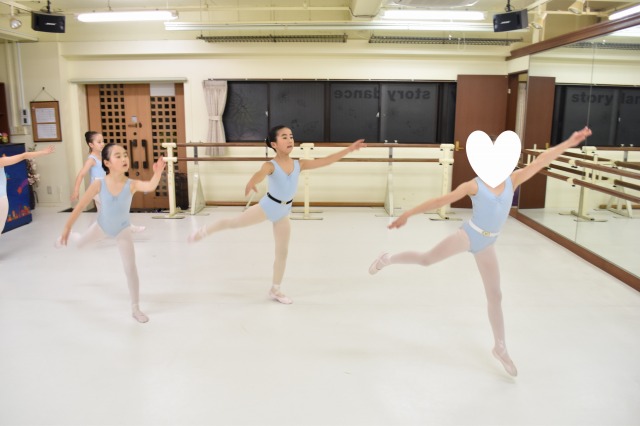 Jエマちゃんはパッセは強く立てるので、着地の5番プリエでお尻を出さないように真っ直ぐ着地しましょう。