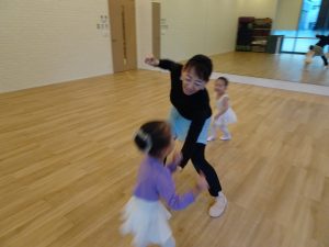 動物ステップではかほちゃんがゆりあ先生に向かって