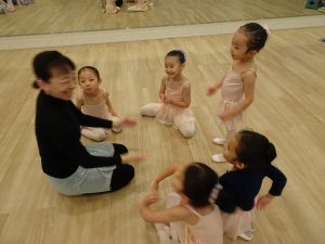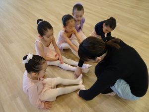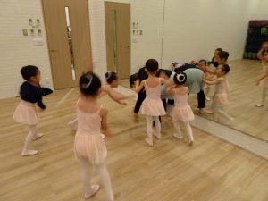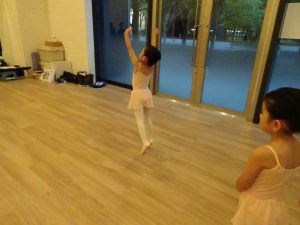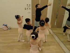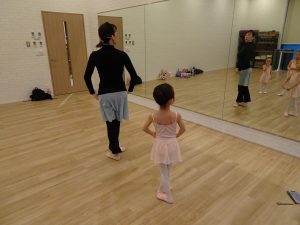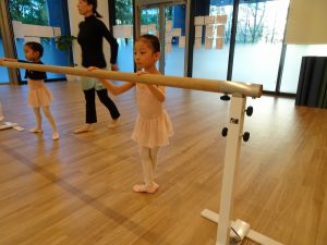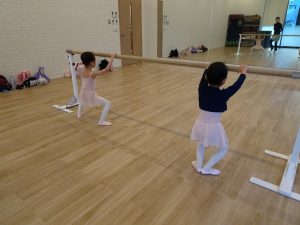 今日から年少のりこちゃんもバーでパッセを練習です。