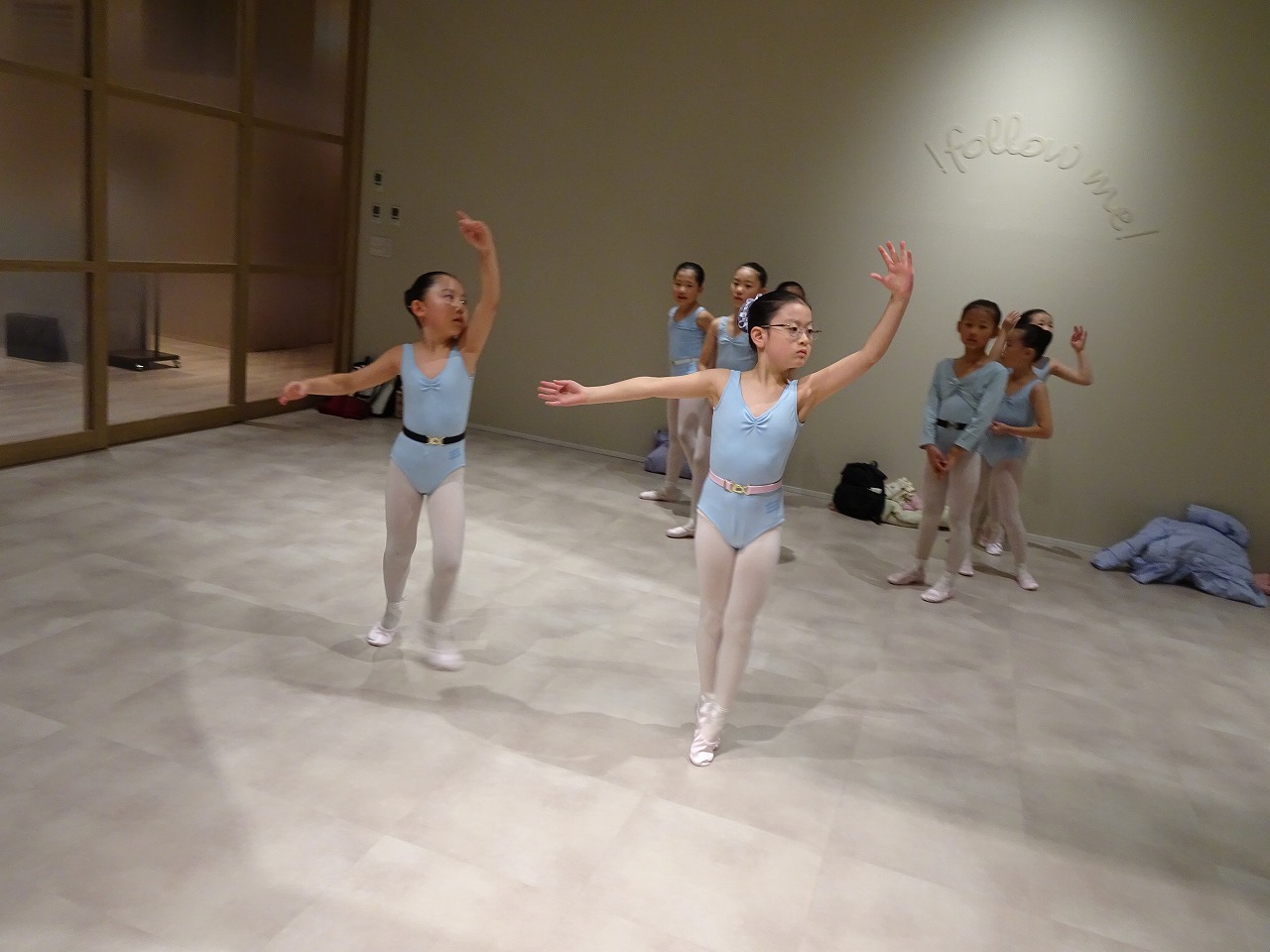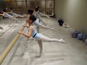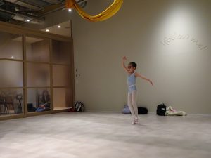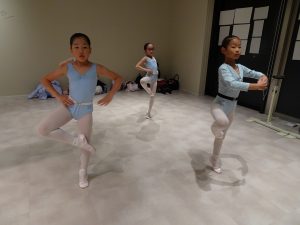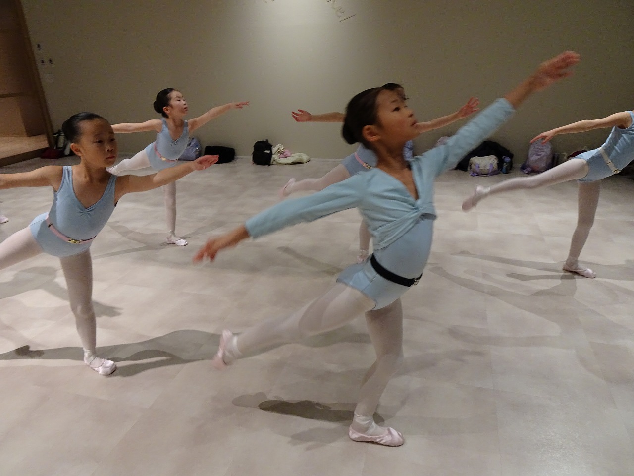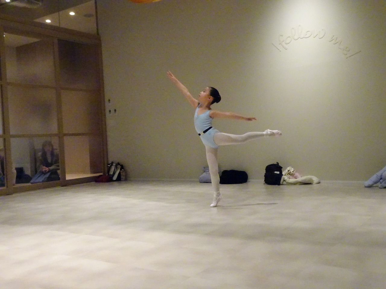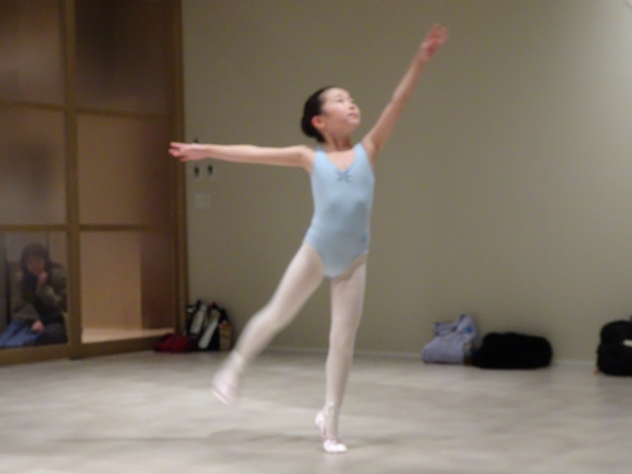 まいりちゃんは、アラベスクの後ろの脚が伸びてお尻まで上がるようになりました。