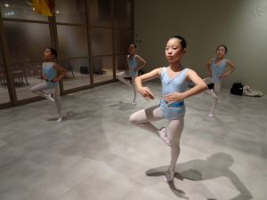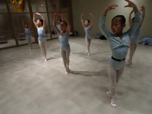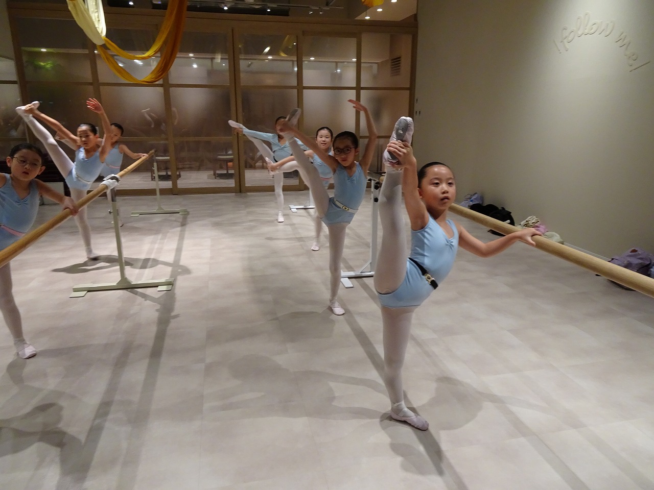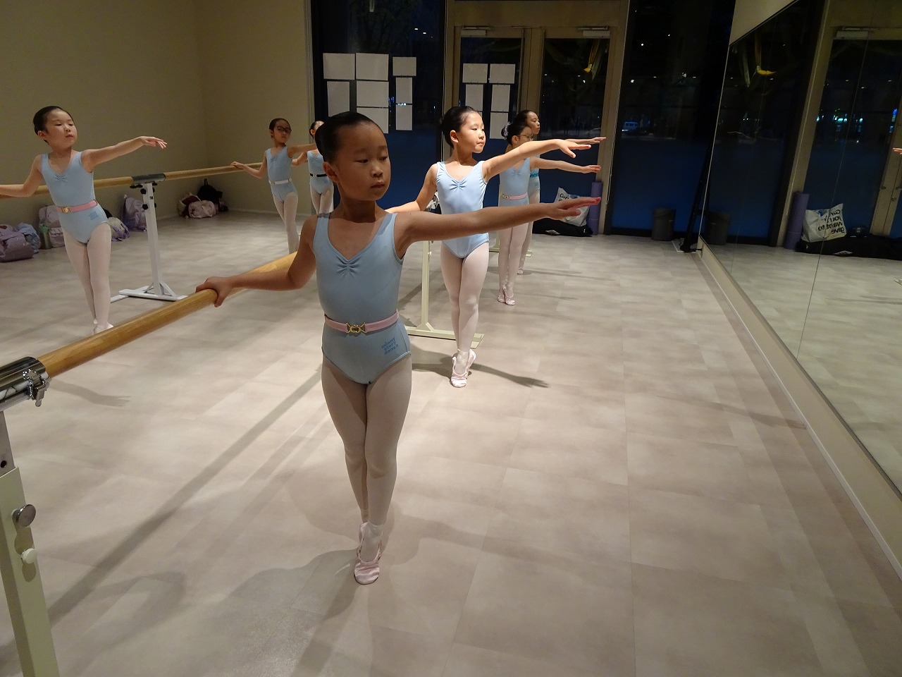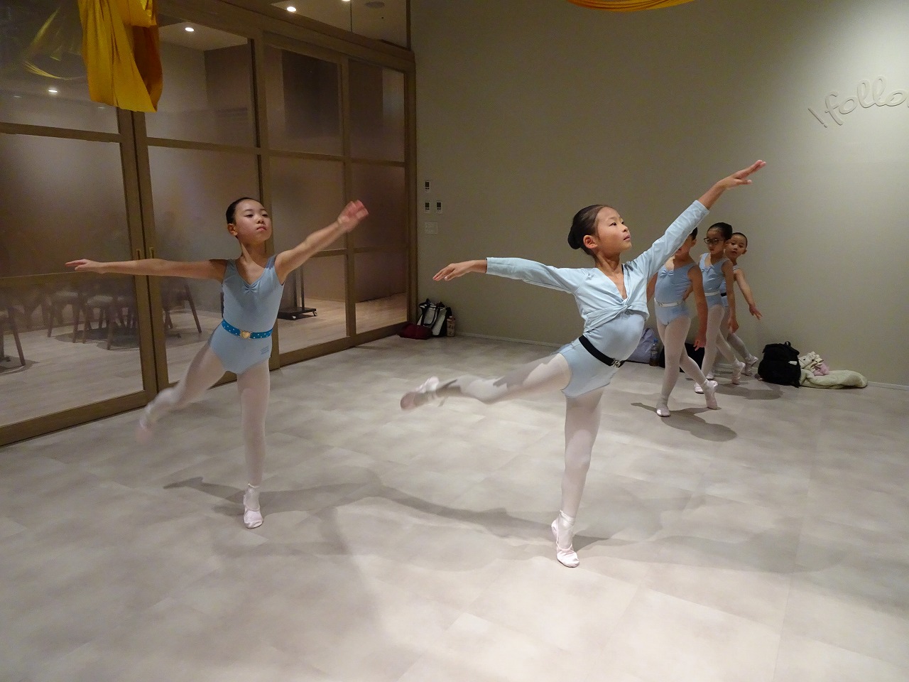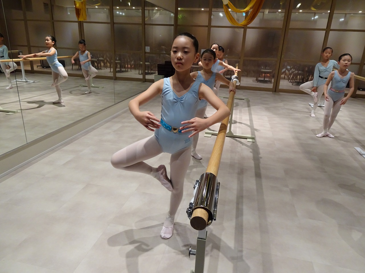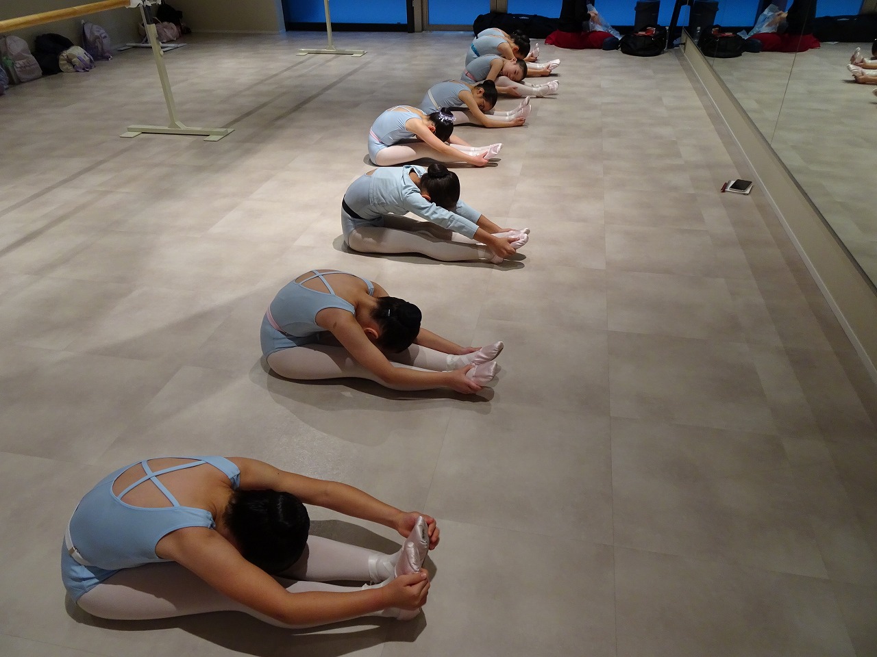 まいりちゃんは、アラベスクの後ろの脚が伸びてお尻まで上がるようになりました。