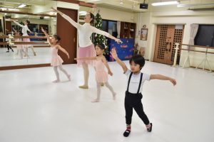 レオくんはシャッセを空中で両足パチンとつけられるように。