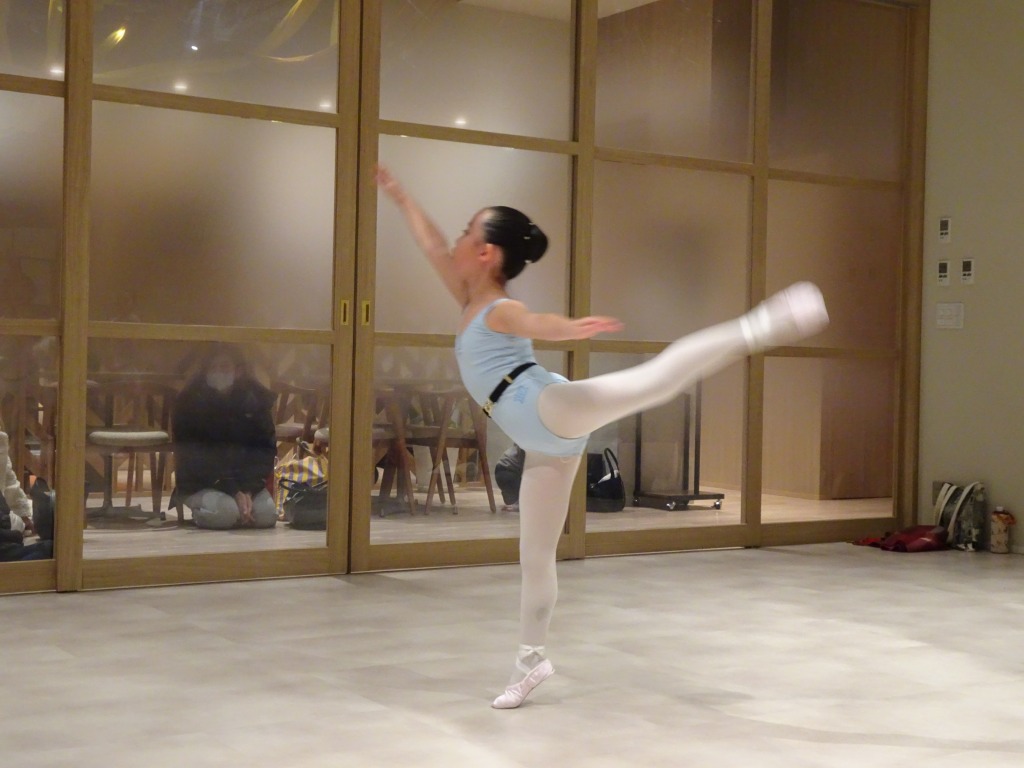 まいりちゃんのアラベスクの脚がお尻よりも高く、綺麗に上がっていました✨