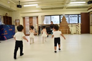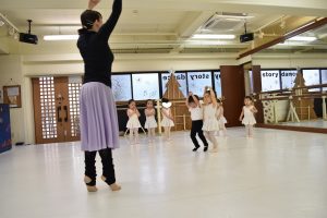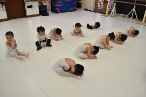 お姉さんたちはルビークラスのストレッチに慣れてきましたね。