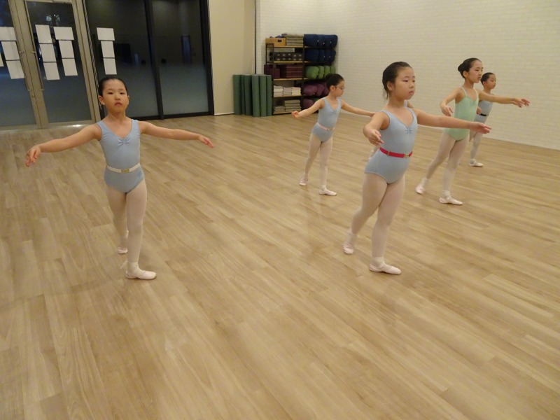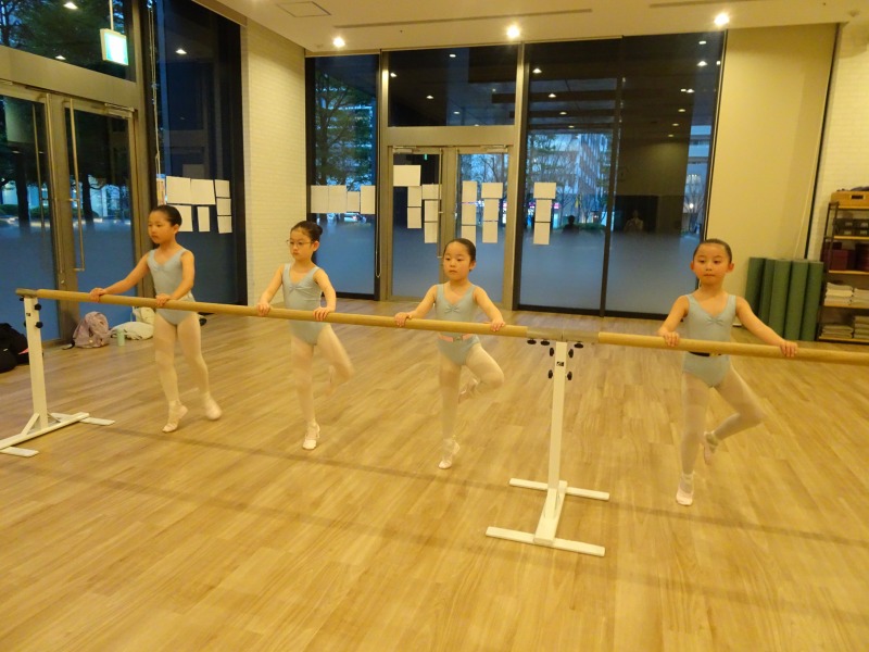 本日は新しくやりたいこともあったので、ストレッチは各自でレッスン前にしてもらい、すぐバーレッスン。