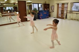 センターレッスンはいろはちゃん、ちとちゃんはシャッセパッセ、りいなちゃんはシャッセを練習しました。