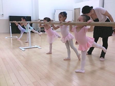 バーレッスンは、一度に全員がバーに入りきらないので2グループに分かれてやりました。