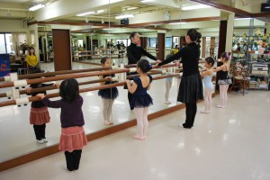 バーレッスンは体験のゆづきちゃんのお手本になるよう、
