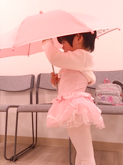 私が「おさんぽ」しましょうと傘を渡すとさっそく床に飾り、率先して寝んねのポーズ!
