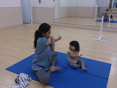 ストレッチではお母様のマネをする姿がとても可愛らしい!