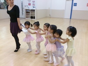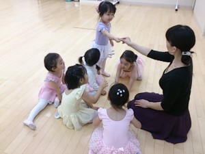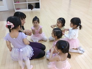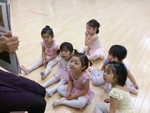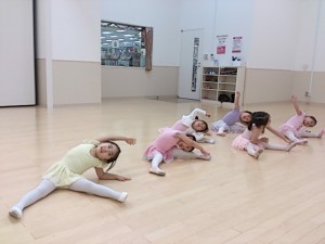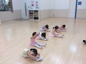ストレッチでは上のクラス「ストロベリー」クラスで行っている事も含めて