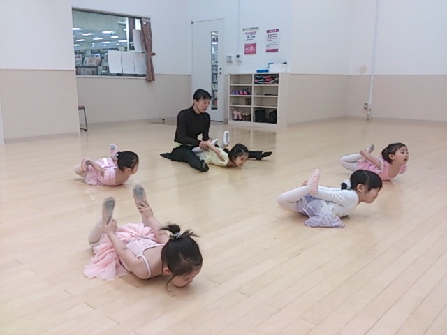 ストレッチは上のクラスへの準備の為多少長めに。