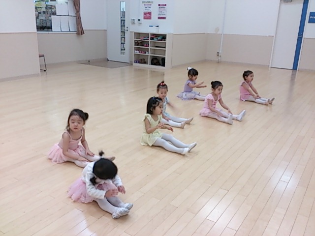 つま先もお膝も、きれいに遠くに脚が伸びて行くようにピン!と伸ばしましょう。
