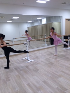 バーでは、グランプリエ(床を押すように深く膝を曲げる)は2人とも少し上半身が