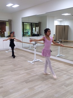 バーでのグランプリエ、上半身が倒れなくはなりましたが腰が一番深い位置に来た時に
