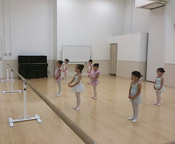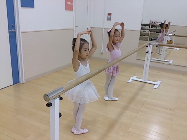 バーでは、年長さんはまず4・5番ポジションを覚えましょう。