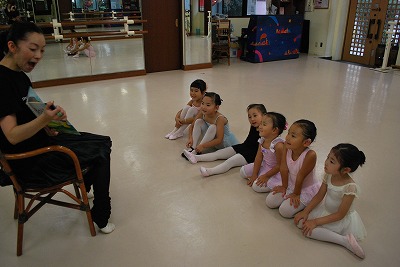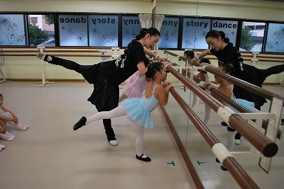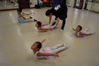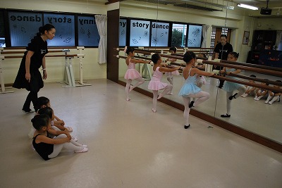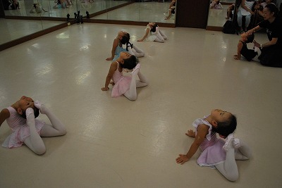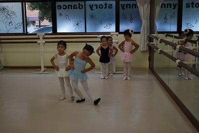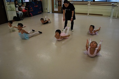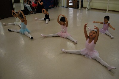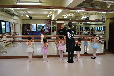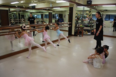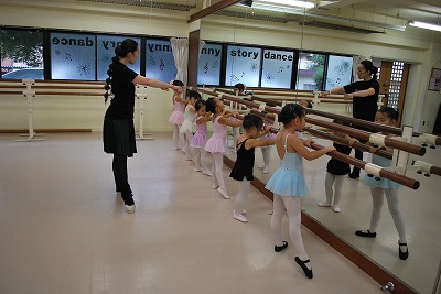 通常のバーレッスンに戻り、年中、年長さんは最後まで一通りやり、