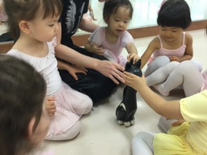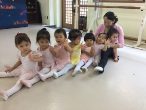フロアーはパドゥブレのみをやりました。お友達が踊っている間はきちんと並ぶ事が出来なくてはいけませんね。