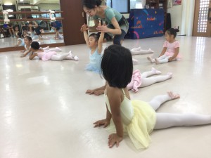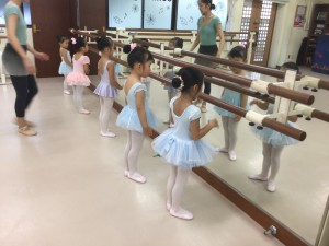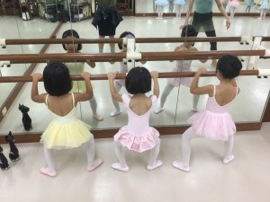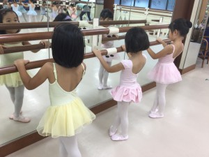 バーレッスンでは年長さん、4番、5番ポジションが学び始めています。