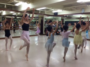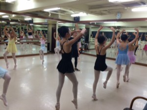センターレッスンでは手を上にあげた状態(アン・オー)で