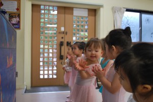 お歌の練習ではお辞儀の練習を始めたばかり、