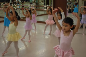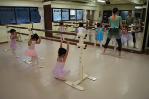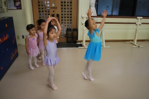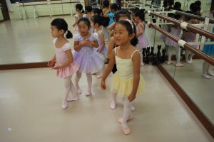 バーレッスンでは、年長さんたちは5番にもだいぶ慣れてきたようです。