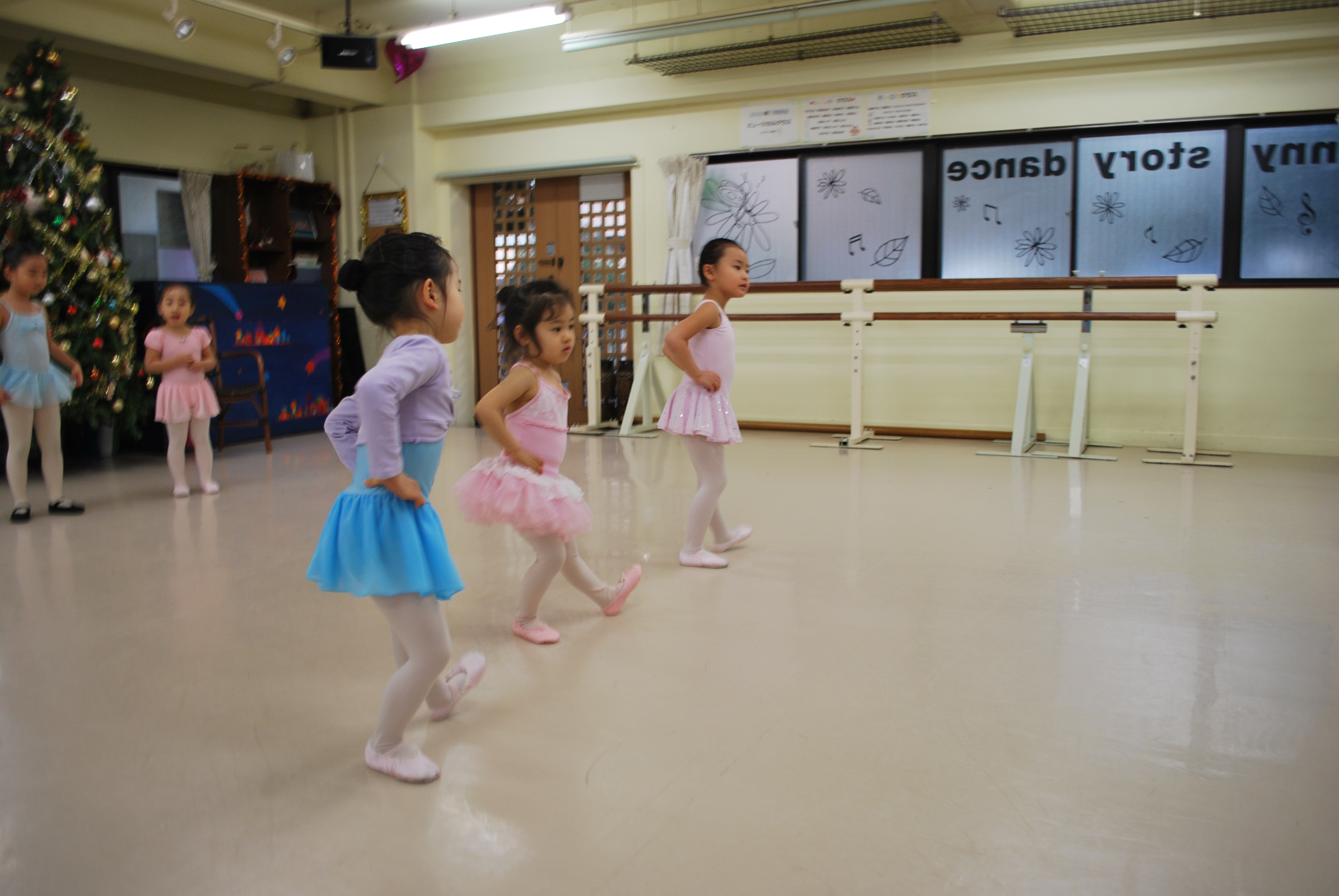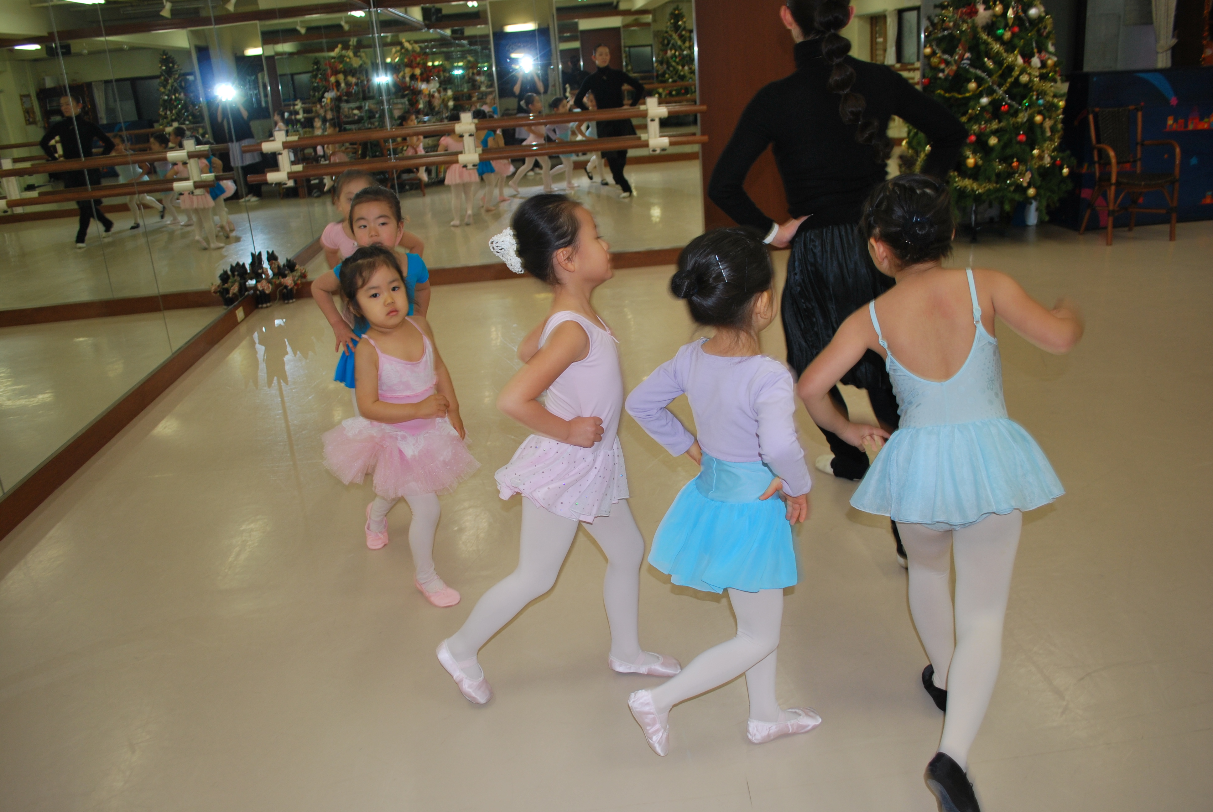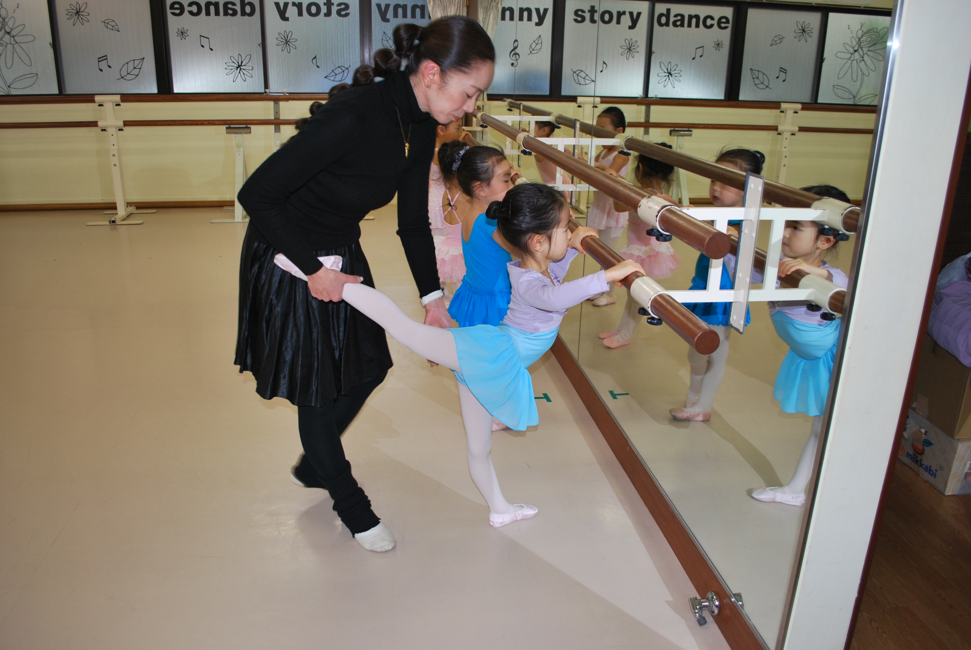 見様見真似で頑張ってバーレッスンついてきてくれています。